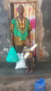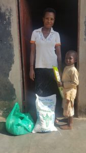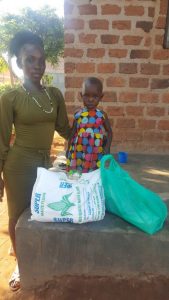45 families were reached to each home receiving 10kgs of maize flour, 5kgs of beans, 2kgs of rice, 1 kg of sugar and a bar of soap. These included some of our staff at Father’s children Nursery and Primary school who are also on a lock down because schools closed and others were community needy single mothers and widows.